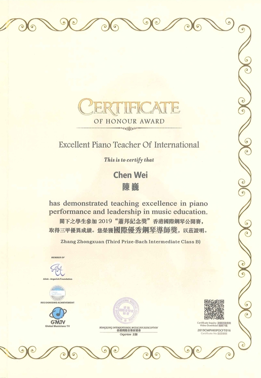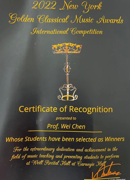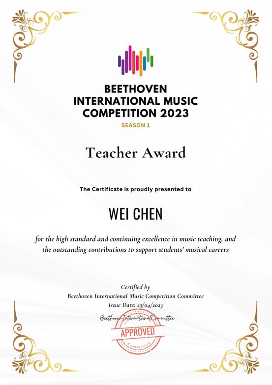 Als Klavierpädagoge liegt seine herausragendste und bemerkenswerteste Leistung im Bereich des Online-Klavierunterrichts. Durch seinen Online-Klavierunterricht erzielen selbst Schülerinnen und Schüler mit sehr begrenzten Vorkenntnissen außergewöhnliche Fortschritte. Seine Online-Schüler erreichten nicht nur hervorragende Ergebnisse von bis zu 147 von 150 Punkten in der ABRSM-Klavierprüfung der Stufe 8, sondern traten auch an renommierten Spielstätten wie dem Zentralkonservatorium für Musik in Peking (China), dem Musikverein Wien (Österreich) sowiedem Kulturpalast Arad (Rumänien) auf. Darüber hinaus wirkten sie bei Klavierkonzerten mit Orchestern wie der Filarmonica Arad und dem Beijing G.A.M.E Symphony Orchestra mit und arbeiteten dabei mit renommierten Dirigenten wie Martin Braun (Deutschland) und Feihu Jiao(China) zusammen. Darüber hinaus wurden seine Schülerinnen und Schüler eingeladen, in der Carnegie Hall aufzutreten.